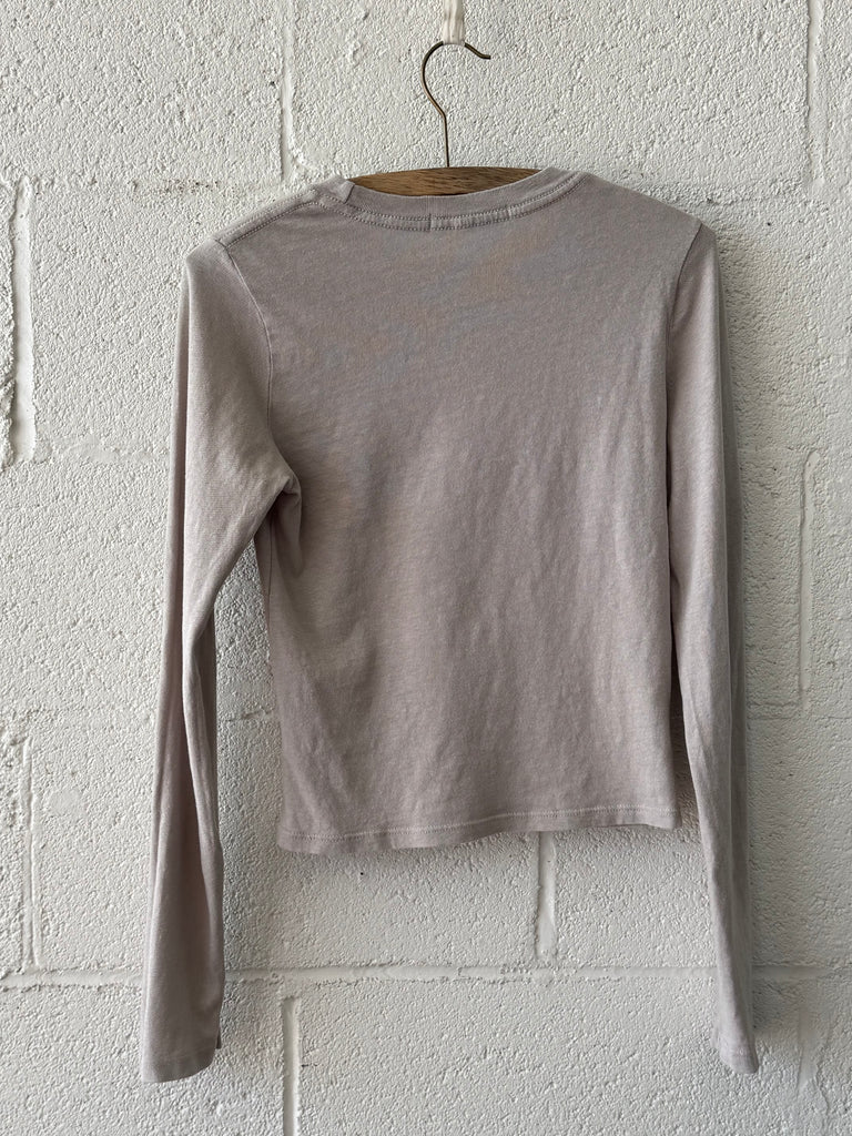the long-sleeve version of perfect white tee's lisa tee is made from recycled cotton with a body-skimming fit that hits right at your natural waist. full length, never cropped, and ready to be on heavy rotation.
