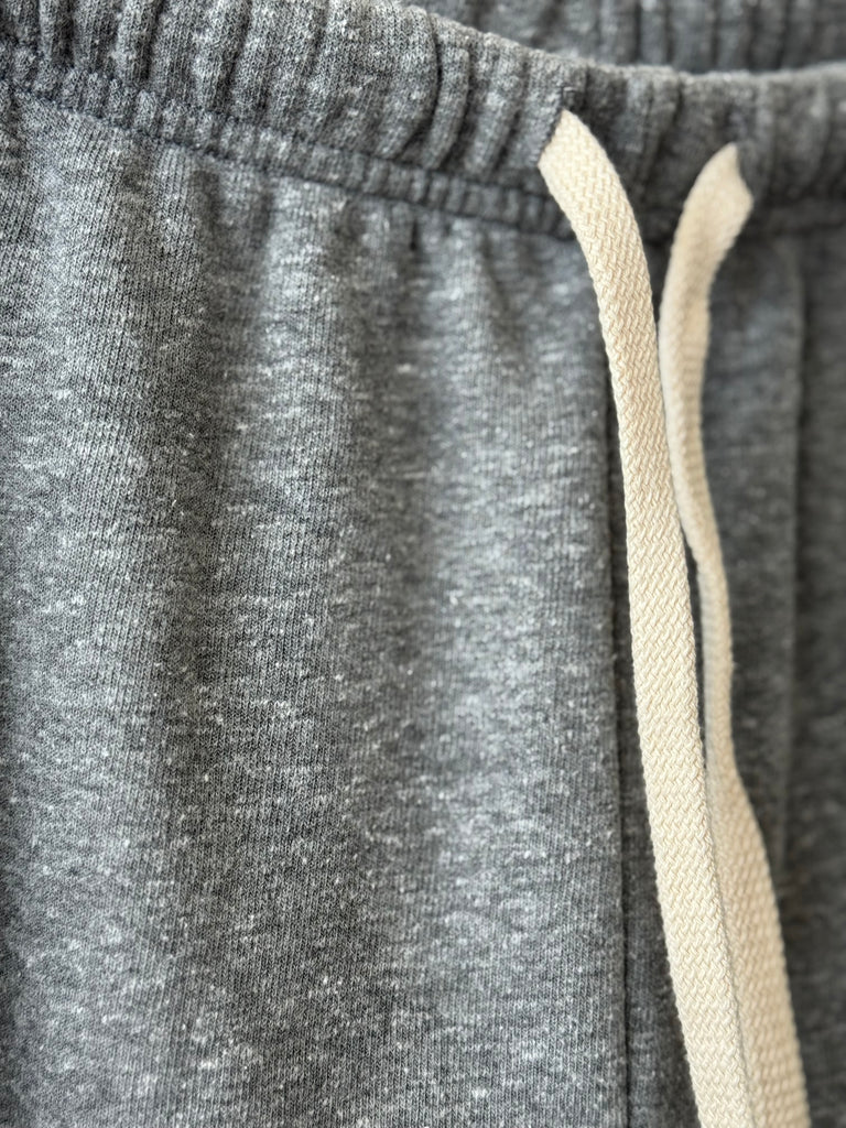 Hey Gang's sweatpants are super cute, slightly cropped, easy fit, with elastic waist band and twill tape drawstring. Made with our midweight french terry. They do have a slight weight to them which makes them extra cozy, but not hot.