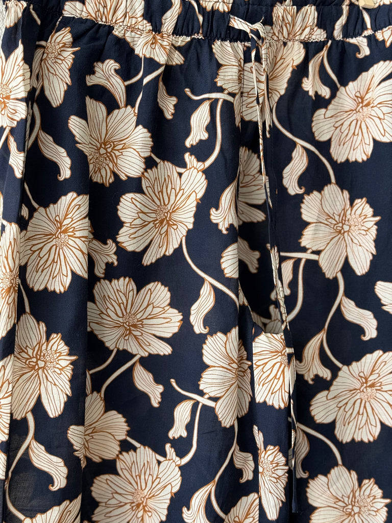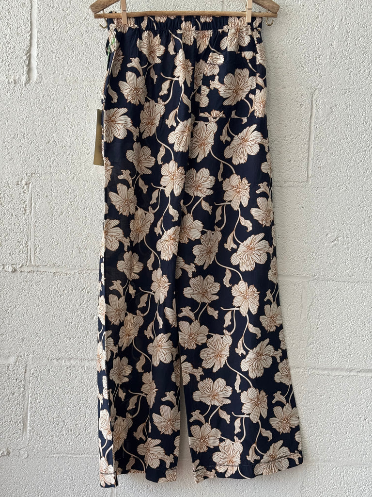 The Vera Pant is a full-length pant with a flattering straight let cut, side pockets and a slim drawstring waist casting with elastic for a comfortable fit. Available in Viola Nocturne and made from Trovata's cotton viscose.