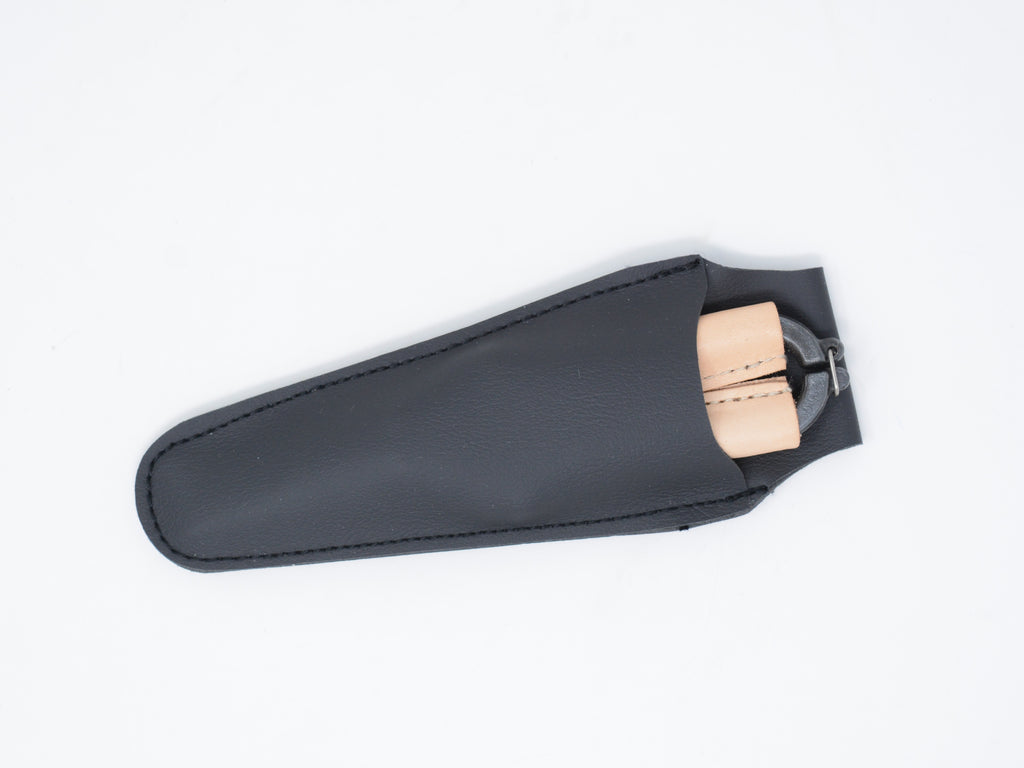The distinctive blade is razor sharp and perfect for cutting plants. The entire process is done by hand, and the handle is colored by baking in a heating oven, so no chemicals used in general painting are used. This pair has a leather wrapped handle.