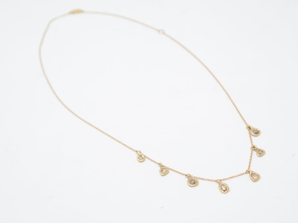 Like a mirage appearing in front of your eyes, seven teeny rose cut diamonds embedded in recycled 14k yellow gold create a mesmerizing sparkly cascade that shimmer from a solid gold cable chain. Wear this piece with a gown or your favorite t-shirt!